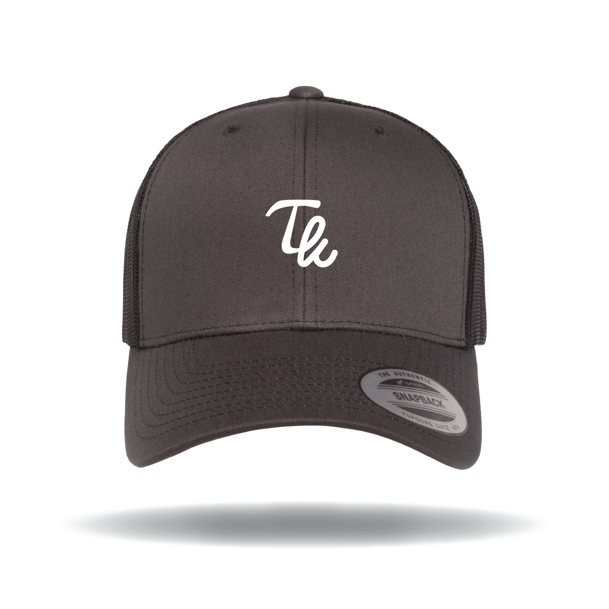 Here's your go-to flat bill trucker hat with a silicone TK Initial branding.